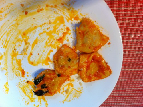 מדליקים את האש במחבת עם הרוטב. מוסיפים את השליש רוטב שנשאר שלא בושל מערבבים ומוסיפים את הטורטליני. מבשלים עוד כדקה.