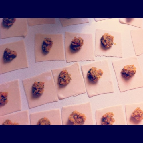 מניחים את הטורטליני על צלחת מקומחת היטב שלא ידבקו. חוזרים על הפעולות עם החצי השני של הבצק.