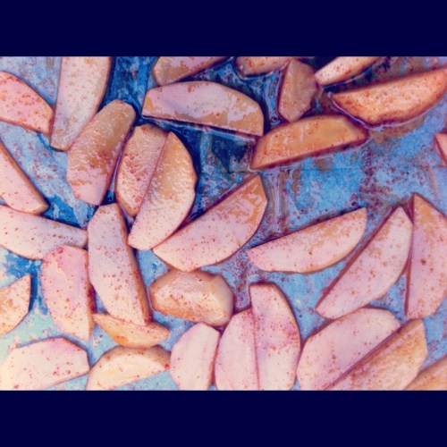 מחממים תנור ל- 200 מעלות. פורסים את תפוחי האדמה לפרוסות בעובי של חצי ס"מ. מניחים את הפרוסות בקערה ועליהם שמן זית, מלח ופפריקה מתוקה…כמה מכל דבר? לפי הטעם ושבסוף כל תפוחי האדמה יצופו בשמן ויהיו אדמדמים מהפפריקה.