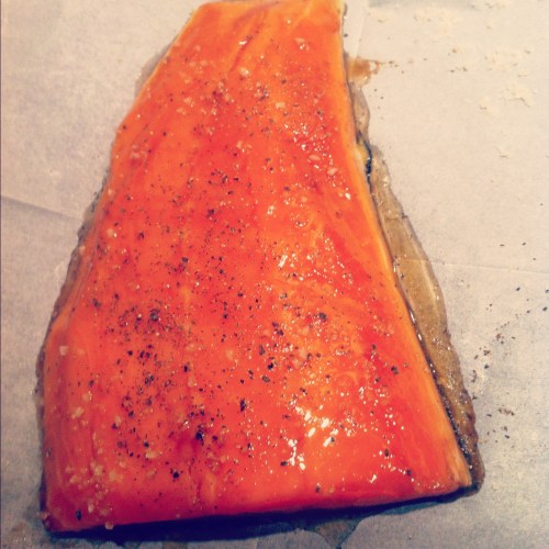 מוציאים מפזרים עוד כף דבש ומחזירים ל-5 דקות נוספות. הסלמון צריך להיות שזוף ולא יבש. יש לבדוק כמה זמן נדרש בתנור שלכם. פשוט מוציאים וחותכים חתיכה עם מזלג ורואים אם עשוי מספיק בפנים.