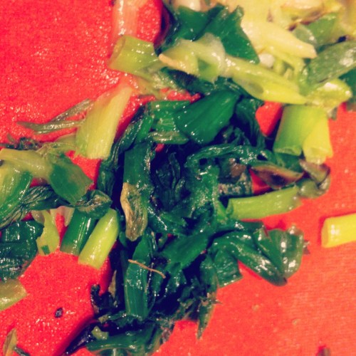 בזמן שהדג בתנור, מחממים מחבת פסים, כשחם מניחים את הבצלים הירוקים משוכים במעט שמן זית (מעסים אותם בידים). צורבים כמה דקות מכל צד (בערך 4 דקות, עד שהם מתרככים ונצרבים בפסי המחבת). כשמוכן מעבירים לקרש חיתוך, חותכים לפיסות קטנות וממליחים.