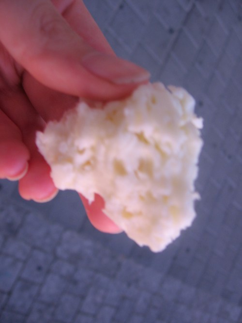התחשק לי לנשנש משהו נוסף והחלטתי לבקר במעדניה סבתות מבשלות הנמצאת בשוק בצד מול הכרמלית. קניתי חתיכה של גבינה גרוזינית שהיא גבינה מלאה בבועות ומזכירה לי אלמוגים.