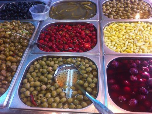 השוק מכיל מספר מעדניות עם מבחר של דגים וגבינות. עצרתי במעדנייה אחת שראיתי את המוכר מנקה במקום פלמידה מעושנת ופורס לרצועות. קניתי דג מלוח (אינטיאס), סלמון מעושן ואיקרה וגם זיתי קלמטה וחמאה הולנדית. כל הטוב הזה שימש אותי לבראנץ' דגים ורוד (ראו פוסט).