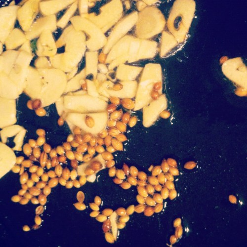 מרוקנים את התוך של הלחם עם היד אך משאירים דפנות מרופדות מעט. מפוררים בידים את התוך ("הרך" של הלחם) לפיסות קטנות ומניחים בקערה. קוצצים את הפטרוזיליה והכוסברה ומוסיפים לקערה. ממליחים ומערבבים. פורסים את השום לפרוסות דקות. במחבת מניחים שתי כפות שמן זית. מוסיפים את השום ואת זרעי הכוסברה ומערבבים. כשהשום מזהיב מוסיפים פפריקה, מלח ומערבבים. מוסיפים מיץ לימון מערבבים ומכבים את הגז.