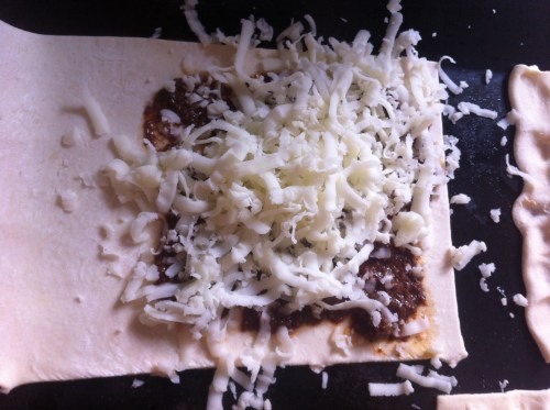 בורקסים קטנים- חשבתי עליהם כעל רביולי וכך הכנתי אותם. חתכתי ריבועי בצק על ידי חיתוך פס ברוחב של בערך 6 ס"מ וכל פס כזה חילקתי לארבעה כך שכל שני ריבועי יצרו בורקס אחד. מילאתי כמות של כף מילוי, הנחתי מעל ריבוע נוסף והידקתי עם האגודל מכל הצדדים.