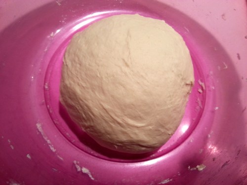 מניחים בקערה את הקמח, השמרים, מעל השמרים את הסוכר ומוספים מים חמימים בהתחלה כוס אחת תוך התחלת לישה של הבצק. כשמתחילים להתגבש מוסיפים את השמן והמלח וממשיכים ללוש. מוסיפים עוד מים בהדרגה לפי הצורך. הבצק צריך להיות קצת רטוב יותר מבצק שנעים לעבוד איתו (כלומר לא נוזלי אלא פשוט בצק שנדבק לידיים) אז מוסיפים את המים עד שהבצק נהייה נוח לעבודה ואז מוסיפים עוד חצי כף-כף מים. לשים במשך כמה דקות עד שהבצק נפרד מהידיים..אני אוהבת ללוש בידיים אבל היות שהבצק דביק, אמליץ שלמי שאין סבלנות, שיבצע במיקסר חשמלי. מניחים את הבצק בקערה ומכסים במגבת ומניחים לתפיחה ראשונה שלוקחת שעה בערך יש להניח באיזור חמים בבית.