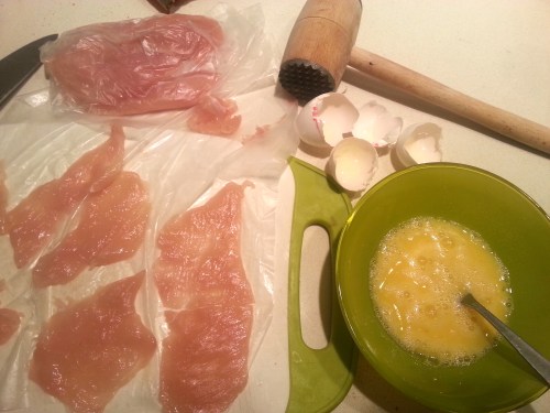 אני הכי אוהבת את השניצלים קטנים (אבל לא שניצלונים) אז אני חותכת אותם קצת.