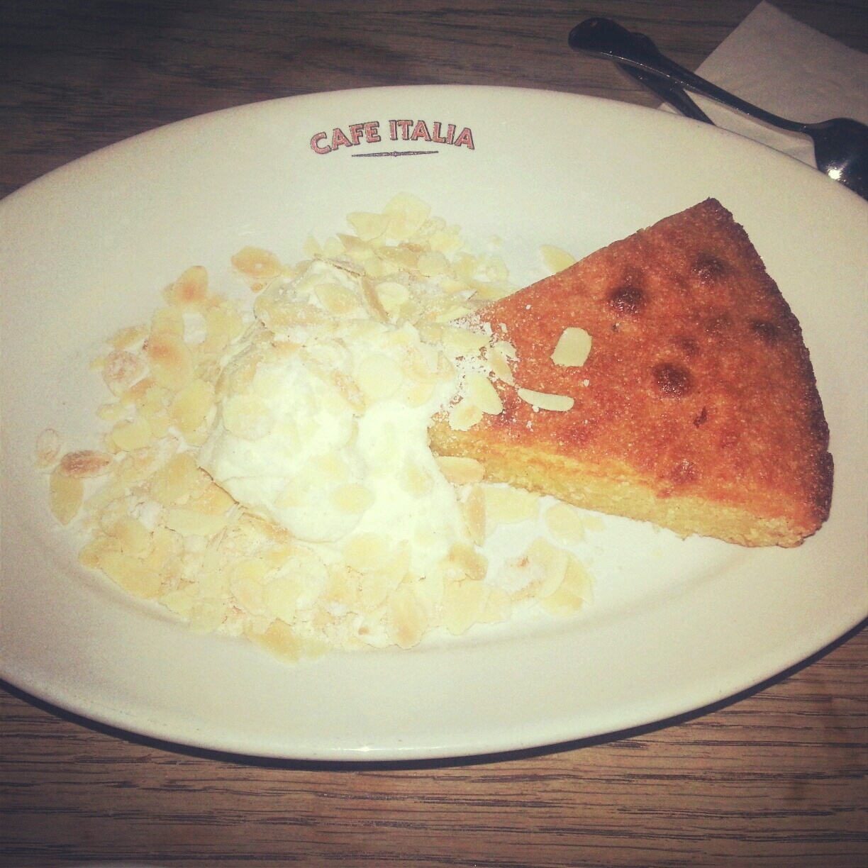 לקינוח, למרות שהיו הרבה מנות ספיישל, שנינו רק המתנו בסבלנות שהמלצרית תסיים כדי שנוכל להסכים על עוגת פולנטה עם קצפת ושקדים (למרות שגם הטירמיסו שלהם מצויין וענק)