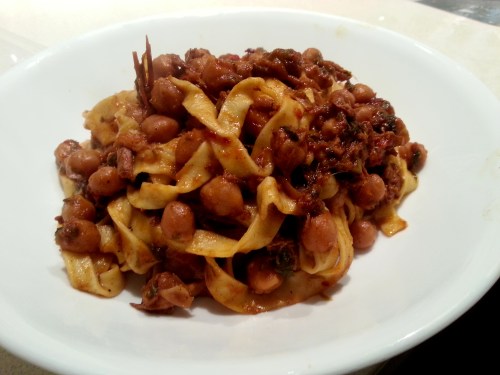 תבשיל מפנק של בשר וגרגירי חומוס עם פסטה טריה