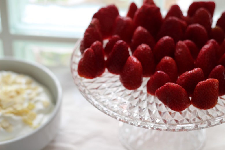 לקצפת- מקציפים חבילת שמנת להקצפה עם כף סוכר ומניחים בקערת הגשה. מפזרים פרוסות שקדים מעל ומגישים עם תותים.