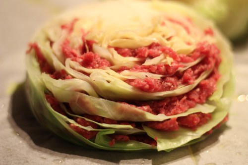 גרסה שונה לכרוב הממולא הקלאסי. מתקבלים שני חצאי כרוב שמשתלבים נהדר בארוחת ערב משפחתית (היות והטעם דומיננטי, מומלץ להגיש כחלק מארוחה עם מנות נוספות ולא לחסל חצי כרוב לבד, שישאר טעם של עוד). כשפורסים רואים את השכבות היפות של הבשר והכרוב כמו לזניה.