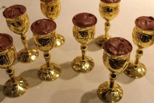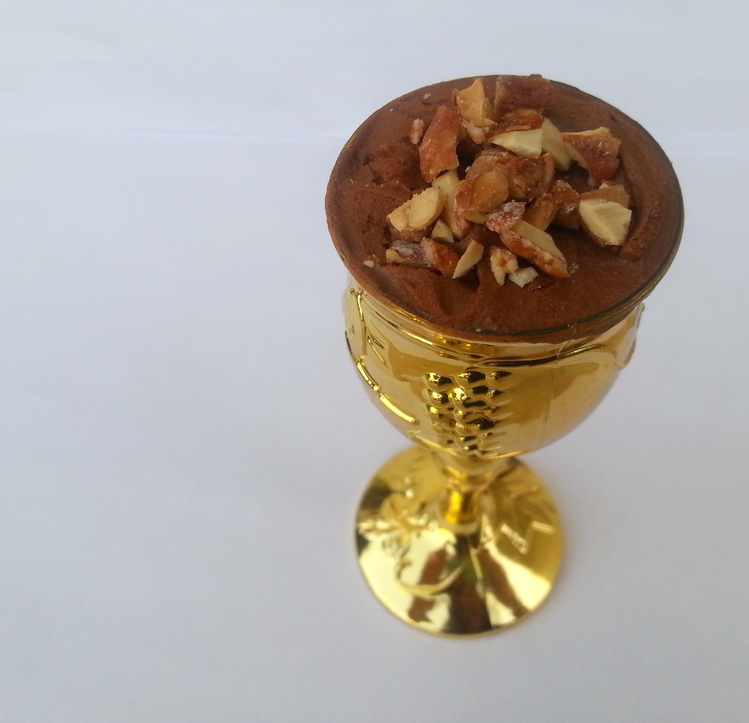 מוס שוקולד עשיר עם שבבי שקדים מסוכרים שמוגש בכוסות של אליהו הנביא (קונים בחנויות יצירה שלי עלו 3 ש"ח לכוס או בחנויות לכלים חד פעמיים) לא לשכוח להשאיר לאליהו…