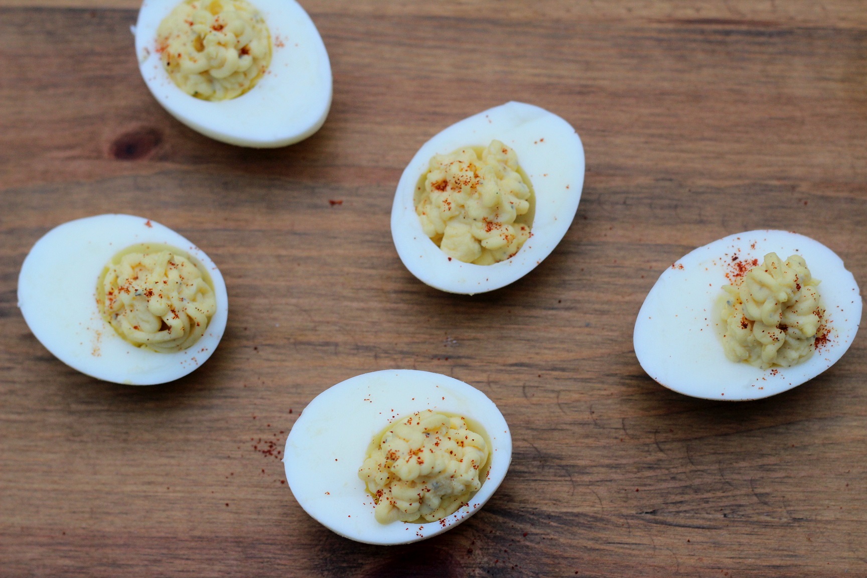 מבשלים את הביצים: מניחים את הביצים בסיר קטן. ממלאים מים מעל לגובה שמכסה את הביצים מביאים לרתיחה ומבשלים עוד עשר דקות על להבה נמוכה. מקלפים וחוצים את הביצים. מרוקנים בעדינות את החלמונים לקערה. מוסיפים את המיונז, חרדל דיז'ון, קורט פלפל ומלח- חשוב להמליח היטב (טועמים ורואים כמה מלח צריך). מערבבים היטב עד שהתערובת חלקה. ממלאים את המזרק (או שקית זילוף או בעזרת כפית) ומזליפים לתוך חצאי הביצים. מפזרים מעט פפריקה מעושנת על כל מלית.