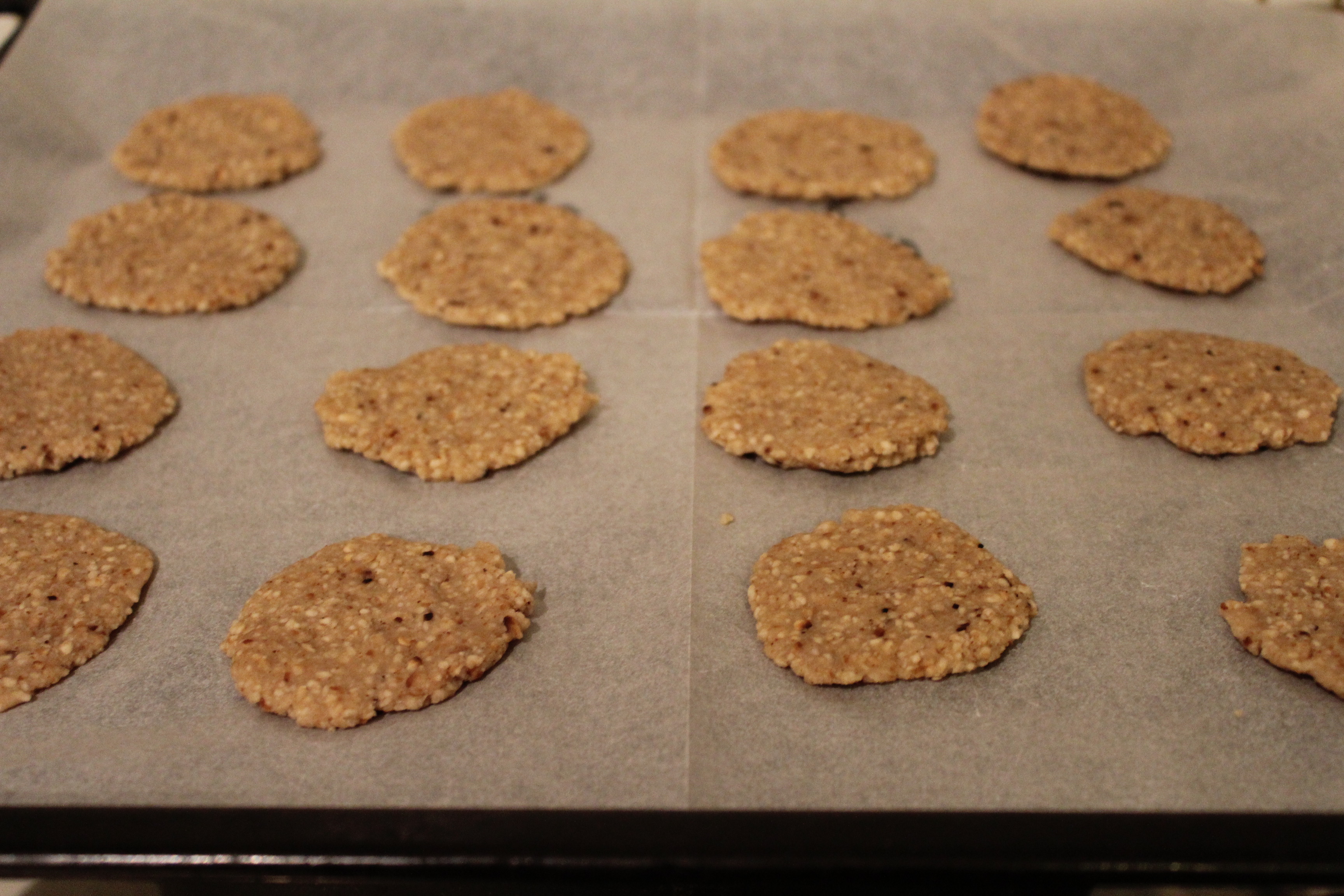 הקרקרים האלו מדהימים, אתם חייבים לנסות- לא תאמינו שזה יצא מקמח מצה. הם נוצרו במקרה: רציתי להכין לחמניות קטנטנות לפסח ולמלא בפסטו הגרוזיני ולאחר שהכנתי את הבצק הרבוך, פתאום לא התחשק לי להכניס לתוכו ביצים. אז החלטתי ליצור מהבצק כמו שהוא קרקרים שטוחים ולקוות לטוב. יצא מוצלח מאד ואפילו 3 ימים אחרי הקרקרים שמרו על טריות ופריכות. שידכתי להם ממרח בהשראה גרוזינית, גרסה שלי לממרח שמכיל אגוזי מלך ולכן מתאים לחג הפסח