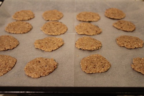 אופים 15-20 דקות מכל צד (כלומר יש להוציא מהתנור ולהפוך) עד שהקרקרים יהיו יבשים גם במרכז (ניתן לפתוח את התנור ולבדוק). מניחים מחוץ לתנור להתקרר. מה שלא אוכלים מיד יש לשמור בכלי אטום.