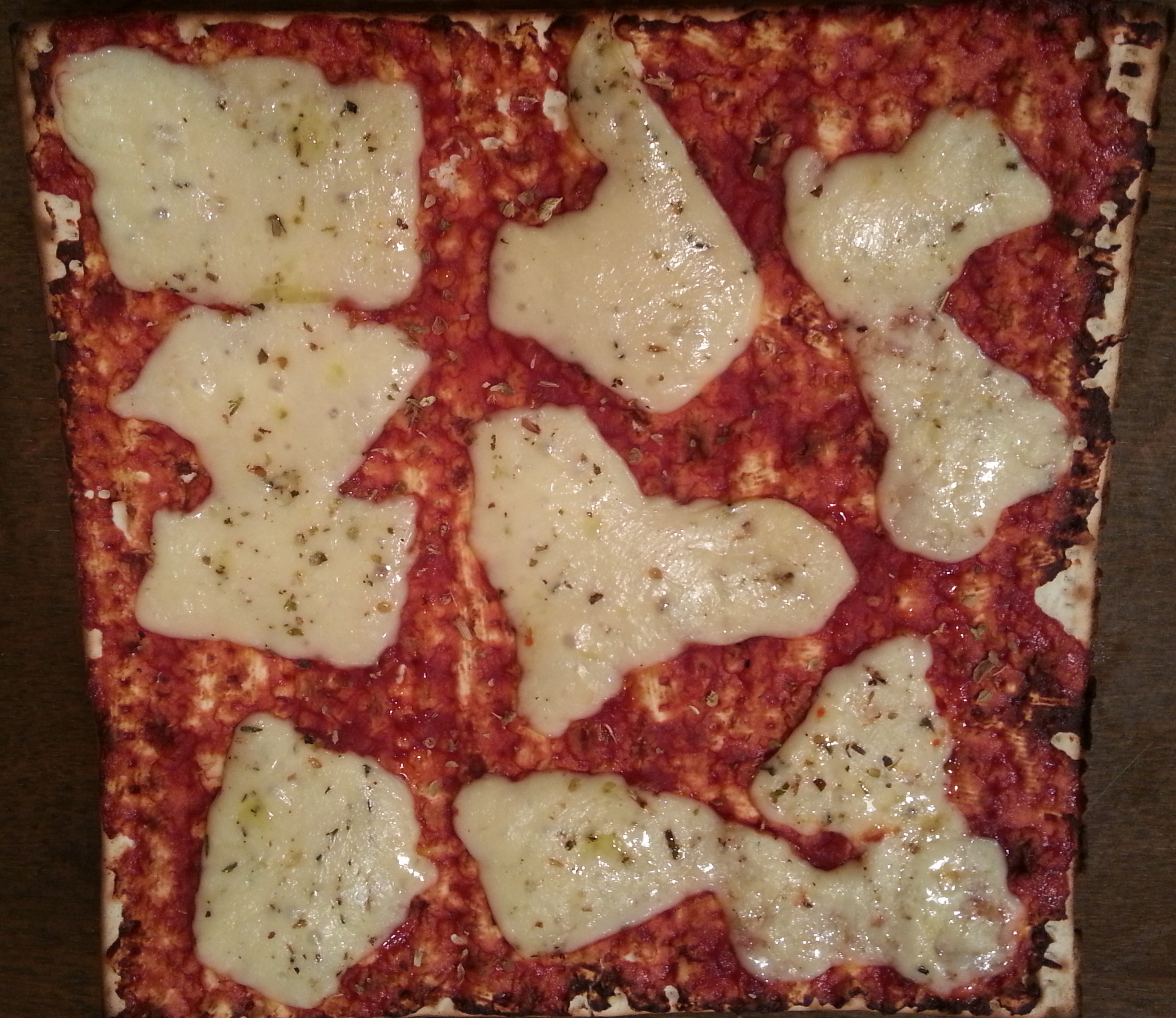 מחממים תנור ל-180 מעלות. מורחים על המצה רסק בשכבה דקה אך אחידה כך שיכסה את כל המצה. מניחים פרוסות גבינה צהובה – מי שלא רוצה לאכול יותר מדי גבינה צהובה (כמונו) יקרע אותה בידיים לחתיכות וישאיר מרווחים ללא גבינה. מפזרים אורגנו וממליחים. מזליפים מעט שמן זית. מכניסים לתנור ישירות על הרשת של התנור לכמה דקות עד ששוליים של המצה משחימות. זהירות שלא ישרף…להיות ליד התנור ולבדוק 🙂